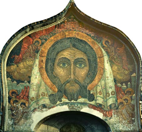 4 В православном храме изображение святого Мандилиона обычно находится или над триумфальной аркой (над алтарем), или над царскими вратами (между храмом и притвором).