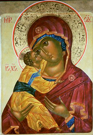 Владимирская икона Божией Матери написана Евангелистом Лукой на доске от стола, за которым трапезовал Спаситель с Пречистой Матерью и праведным Иосифом. Божия Матерь, увидев этот образ, произнесла: «Отныне ублажат Меня все роды. Благодать Рождшегося от Меня и Моя с этой иконой да будет».