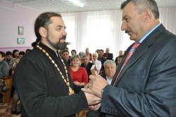 В своем слове, обращенном к новоизбранному главе города, отец Петр поздравил его с избранием на ответственный пост, молитвенно пожелал душевного мира, здоровья, сил и помощи Божией в трудах на благо заозерновцев, а так же выразил надежду на сохранение сотрудничества между городским руководством и Русской Православной Церковью. Отец Петр подарил новому мэру г. Заозерный икону прп. Серафима Саровского и благословил этой иконой на добрые дела во благо жителей вверенного отныне его попечению города.
