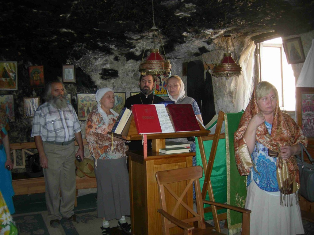 Молебен в пещерном храме монастыря Харитона Исповедника.